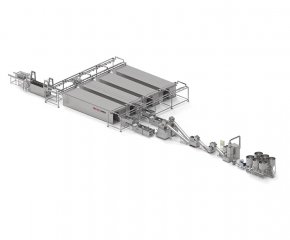 概要信息:本800型生產(chǎn)線采用制熟工藝原理制造。適用于發(fā)酵與非發(fā)酵、米粉熟化度90%以上,含水量13.5-14.5%、粉徑0.8-3mm、保質(zhì)期18個(gè)月圓柱形直條干米粉的生產(chǎn)。全程PLC控制,確保生產(chǎn)過程和產(chǎn)品質(zhì)量的穩(wěn)定性、一致性。 班生產(chǎn)用工4-5人,相比傳統(tǒng)產(chǎn)線節(jié)約人工70-80%,滿足了從配下米到切粉的全工段自動化生產(chǎn)過程。