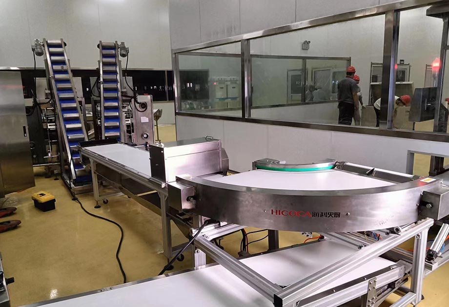 應用范圍:完成對鮮濕面、水餃、湯圓、小饅頭等類似產品的輸送、塑料袋包裝全過程。