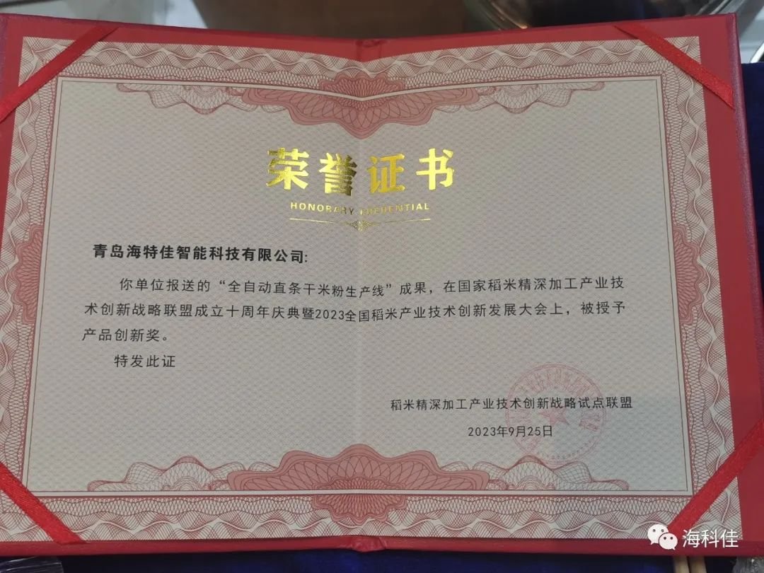 “國(guó)家稻米聯(lián)盟”十周年大會(huì)隆重召開(kāi) 海特佳米粉裝備榮獲“產(chǎn)品創(chuàng)新獎(jiǎng)”