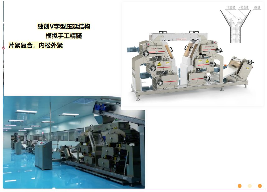 這是本生產線的靈魂專利技術。其獨創的V字型結構,緊湊配置了7對壓輥,模擬并超越了手工折疊、壓延的智慧。