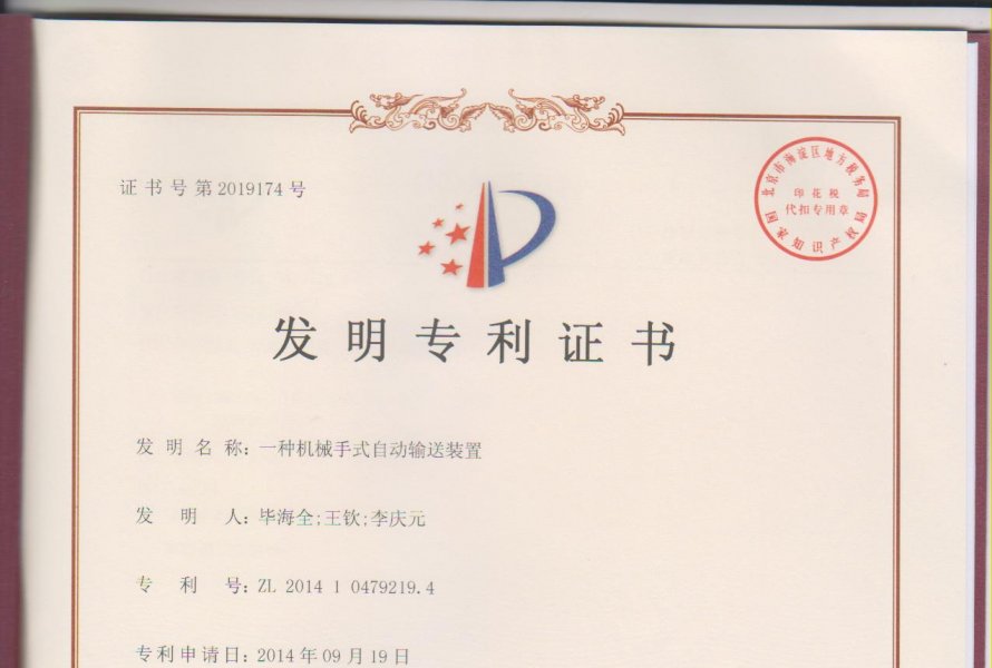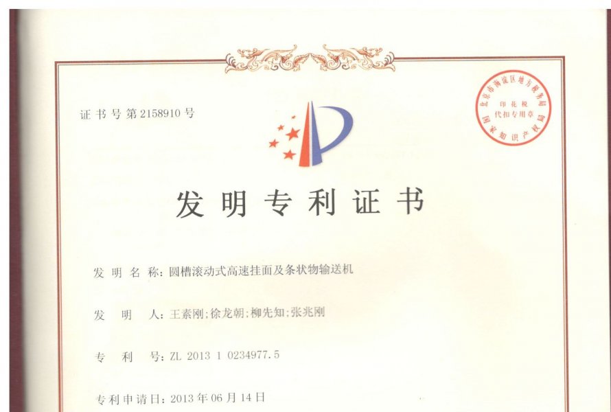 雙層切面機研發成功;2500g紙包裝機試制成功;機械手自動供料系統試制成功。